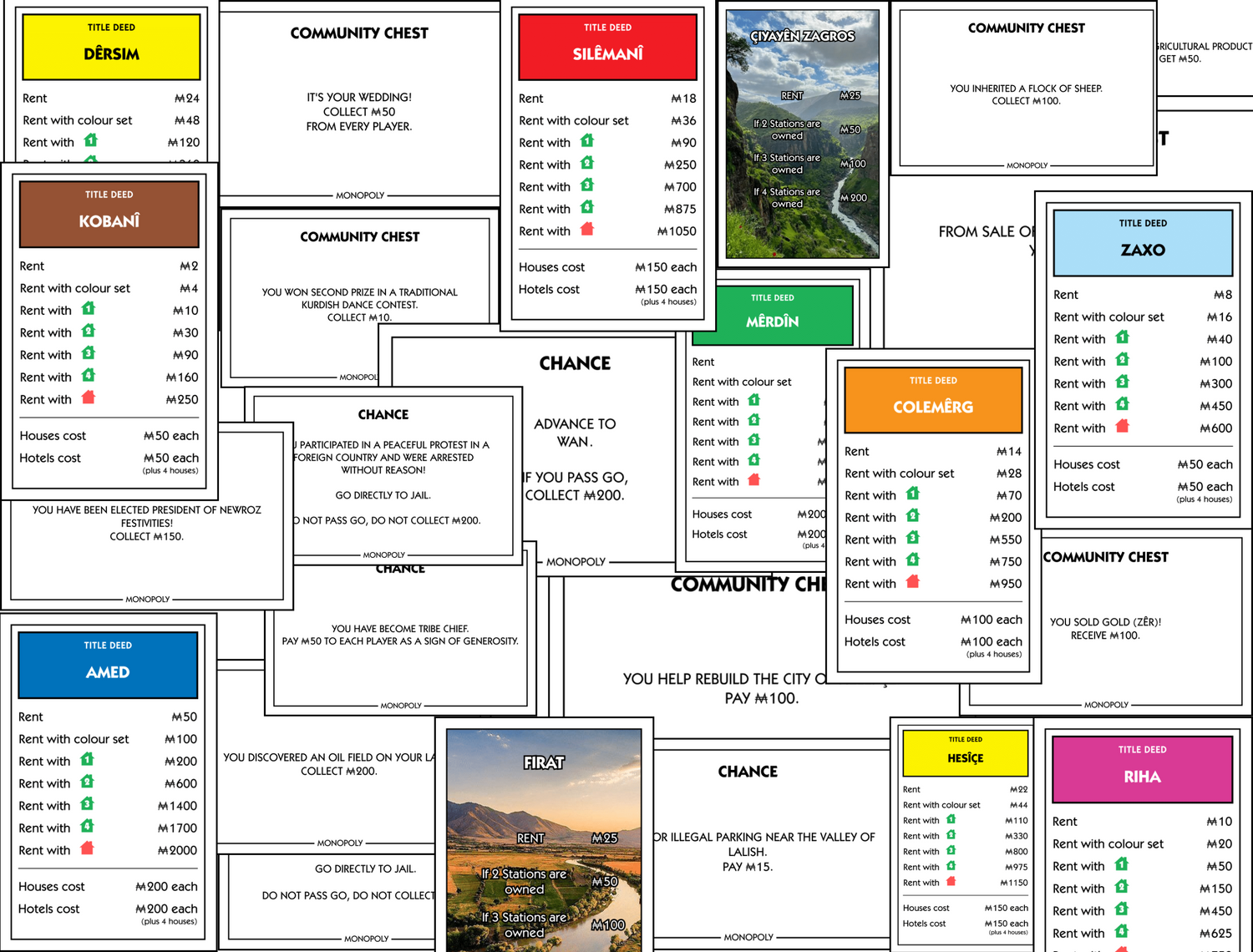 Every card in Monopoly Kurdistan has been reimagined to reflect the culture, cities, and stories of Kurdistan.